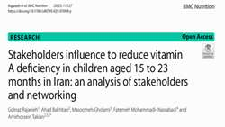 تحلیل ذینفعان و شبکه تأثیر ذینفعان بر کاهش کمبود ویتامین آ در کودکان ۱۵ تا ۲۳ ماهه در ایران: تحلیل ذینفعان و شبکه مقاله «تأثیر ذینفعان بر کاهش کمبود ویتامین آ در کودکان ۱۵ تا ۲۳ ماهه در ایران: تحلیل ذینفعان و شبکه» در مجله «BMC Nutrition» منتشر شد. --> ...