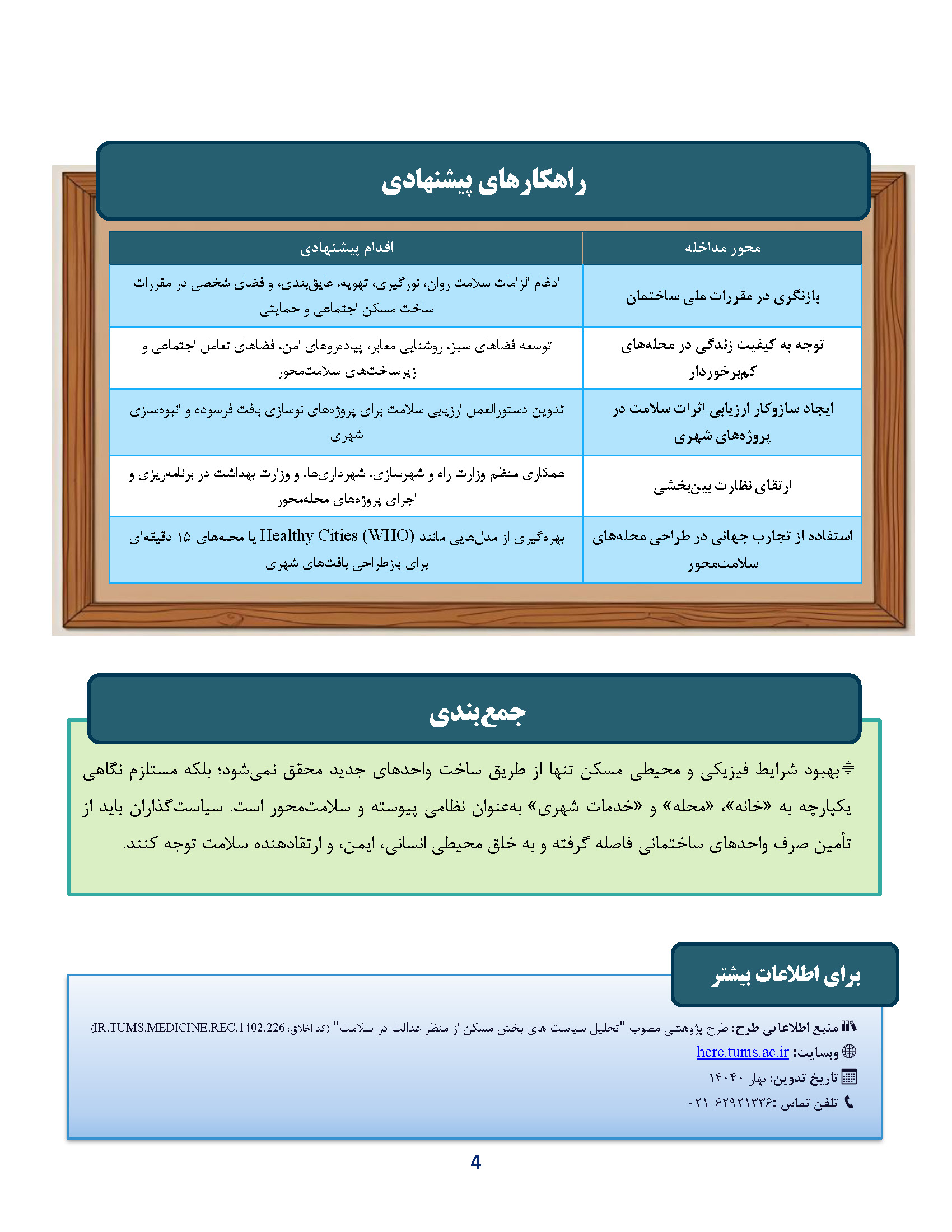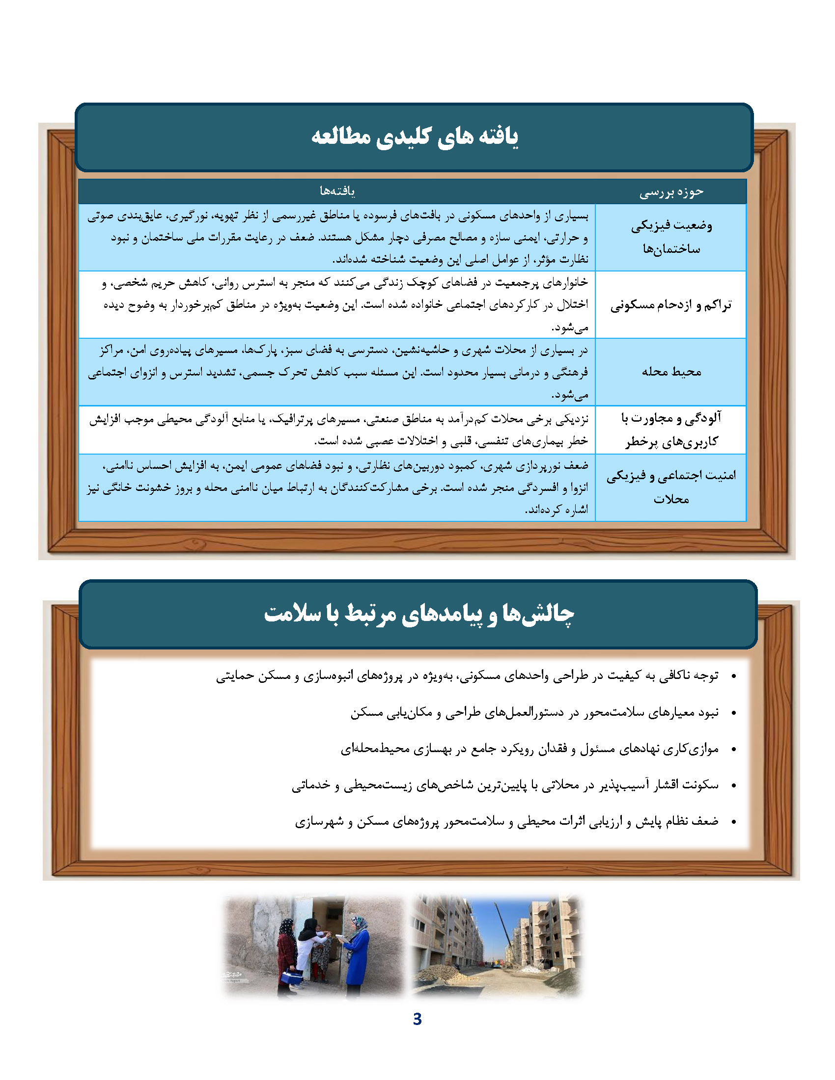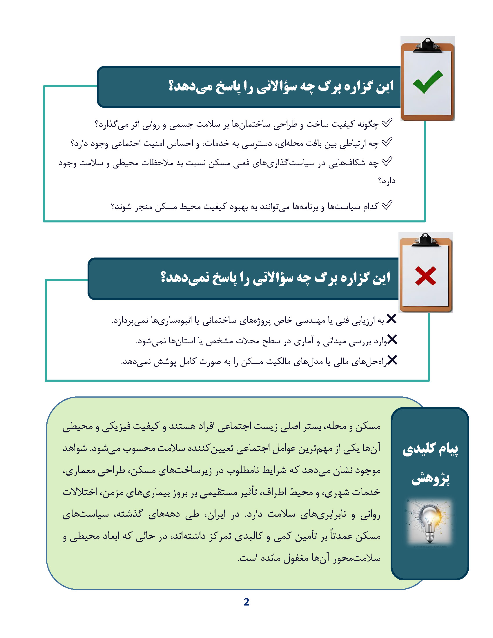 گزاره برگ: شرایط فیزیکی و محیطی مسکن و محله‌ها: چالش‌های اثرگذار بر سلامت